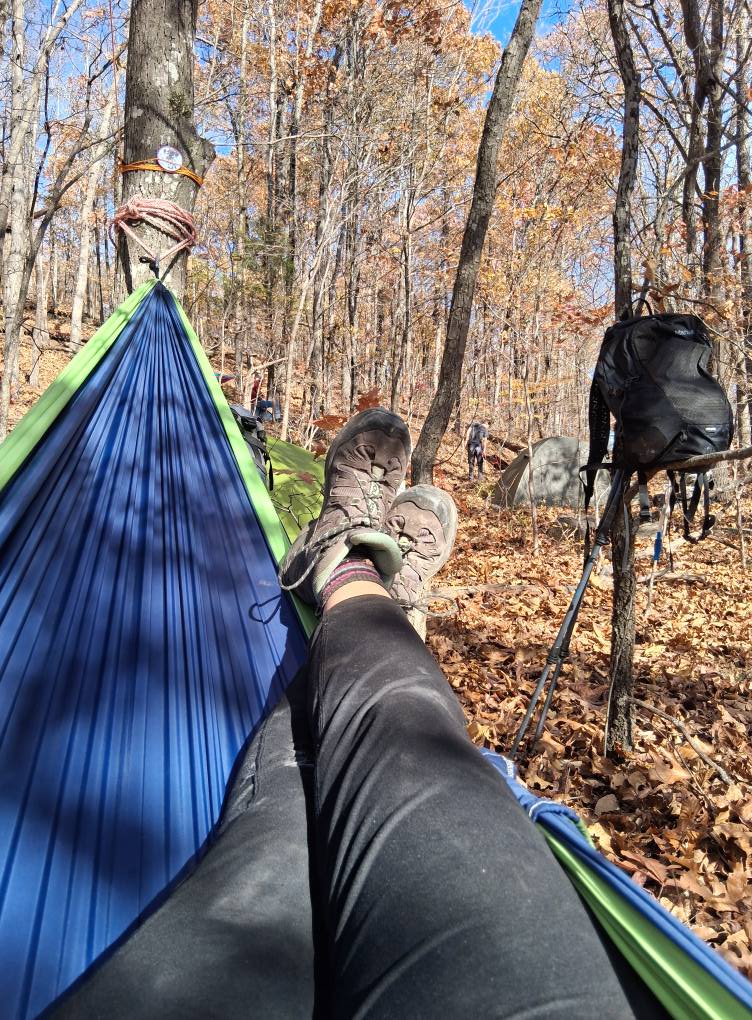 along the Centerpoint Trail till we came to a "relatively" flat area off the