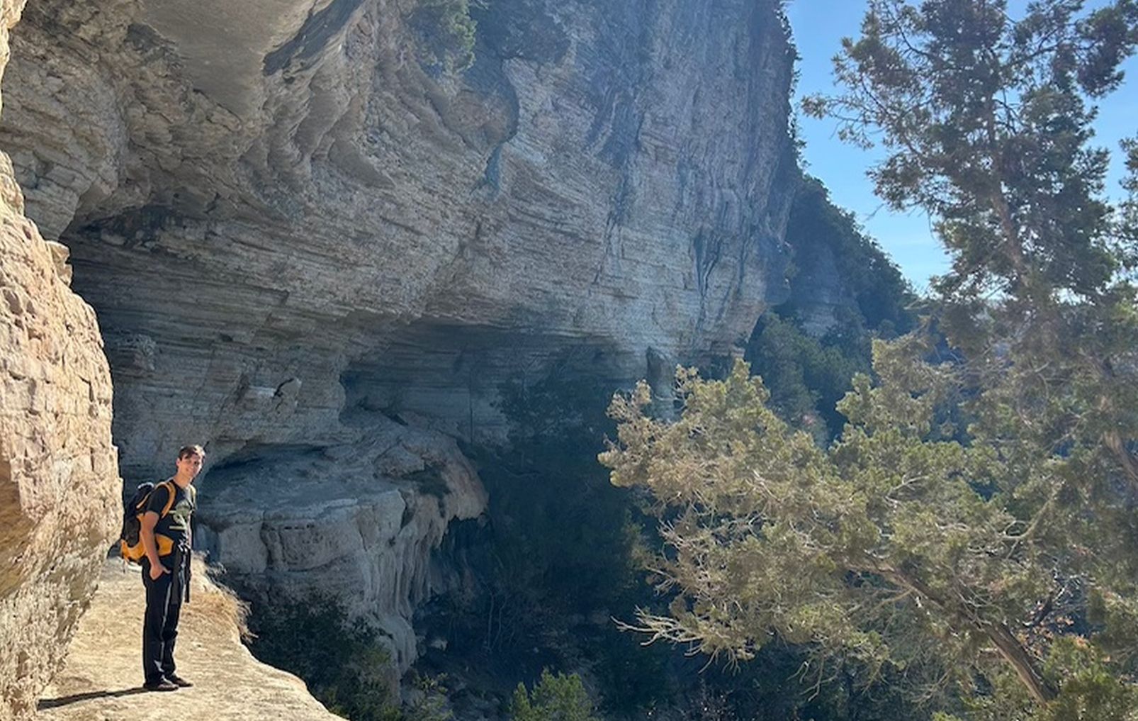 bluff is somewhere around 500+ feet tall, and the ledge that the Goat Trail