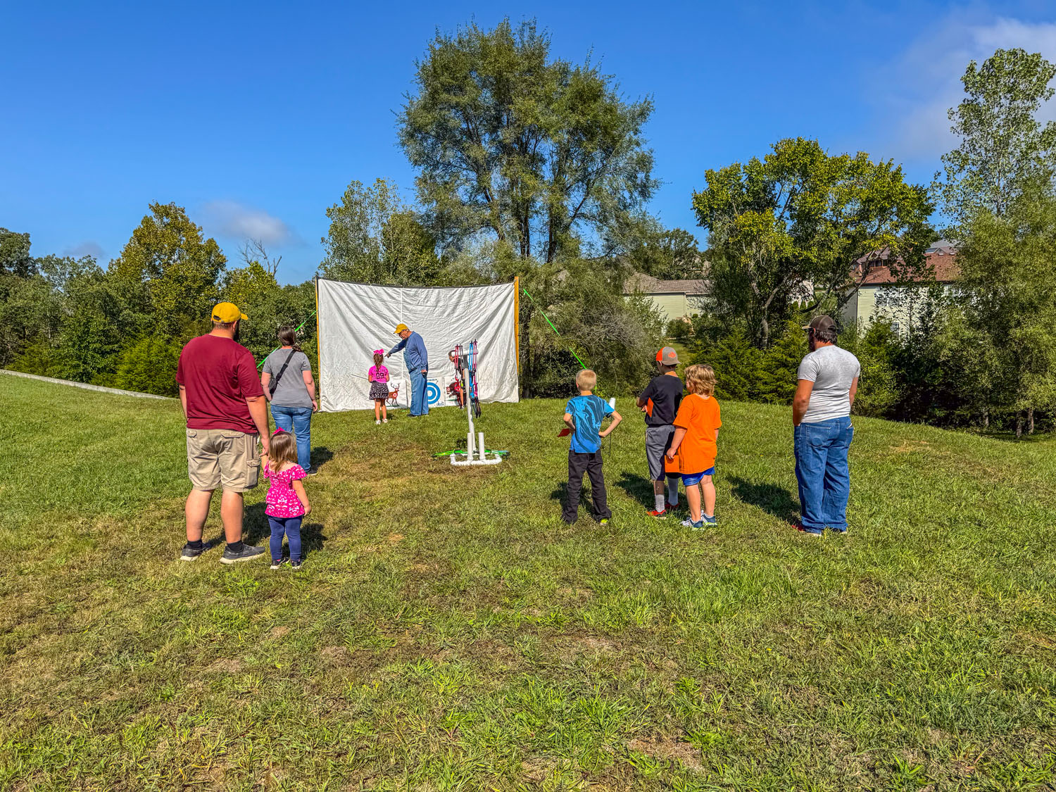 Family Fun Day was held on Oct. 11, 2025 at Branson First Assembly. Branson First handled the free lunch, hot dogs, chips, drinks. Branson First also provided grocery bags for those needing help with those as well as haircuts. Activities included, pony rides, tomahawk targets, archery, drift trikes, bounce house, bible knowledge challenge, slingshots, marshmallow musket building and shooting, Frisbee toss, duck pond and giant jenga. A drawing was held for those that did 5 activities for one $50 bassPro gift card and four $25. Cash prizes. There was 49 kids that participated with 15 of them indicated no church affiliation. Approx. 30 adults helped and participated from 9 churches.